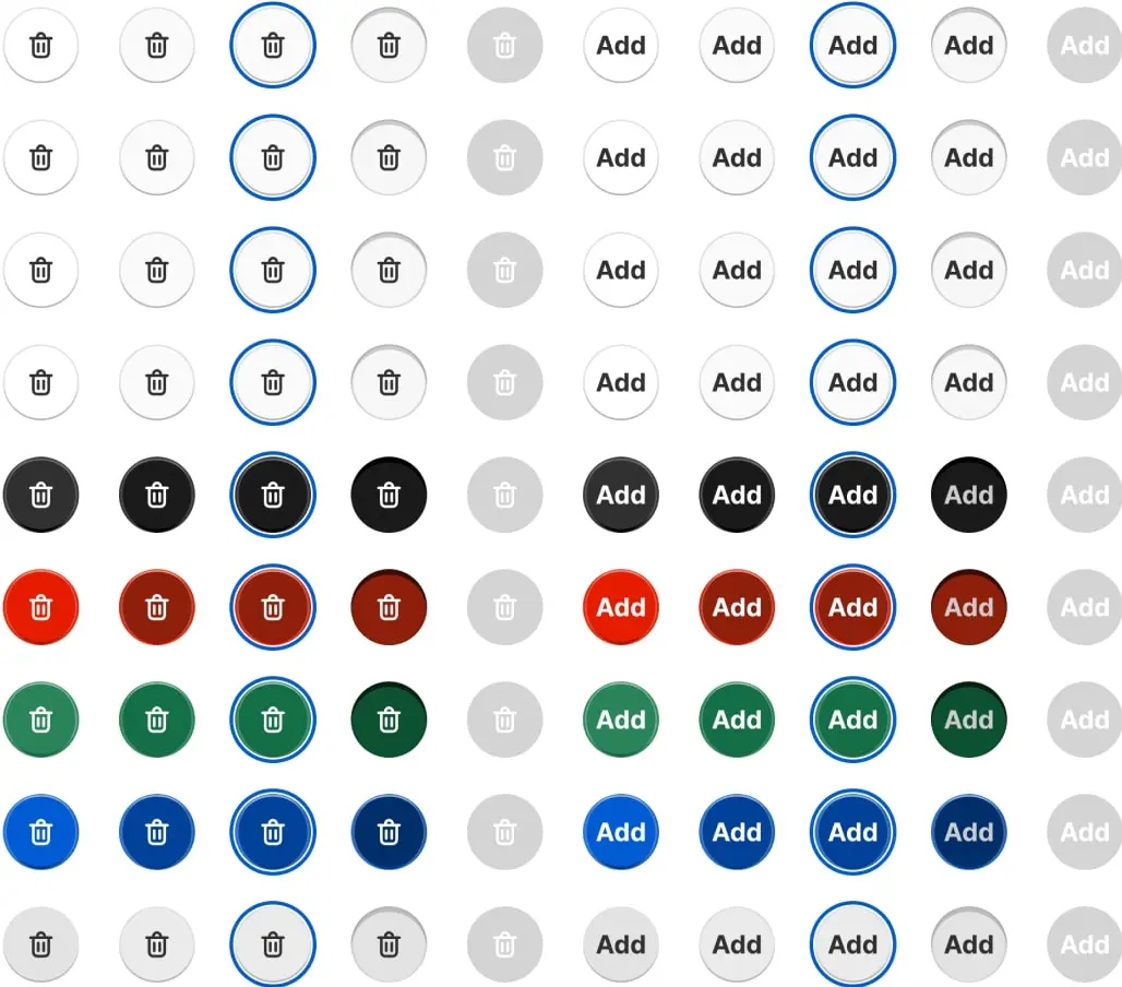 A set of reusable low-level components was created as a foundation for the larger component library. These components and their variants ensure design cohesion while accelerating workflow. Components were developed using Master components and Auto Layout for cross-device responsiveness, allowing for effortless updates and automatic realignment. All buttons were designed above 48px to enhance user-friendly navigation and improve accuracy.