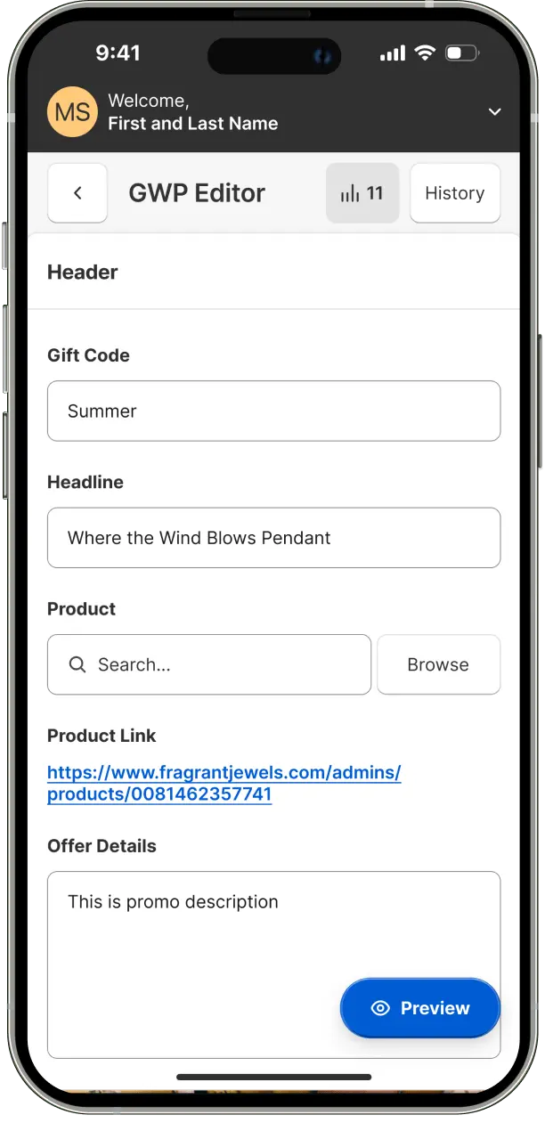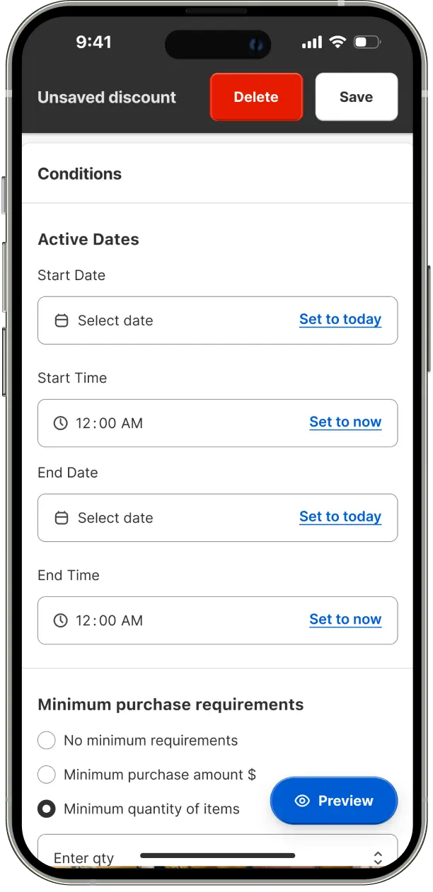 A readily accessible promo preview button was incorporated, also following the Gutenberg Principle for ideal placement. The product search bar was enhanced with high contrast design, emphasizing its importance and guiding user action. A floating save/delete bar appears on scroll, allowing users to quickly preserve progress or abandon tasks without navigating to the page bottom.