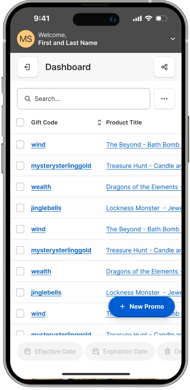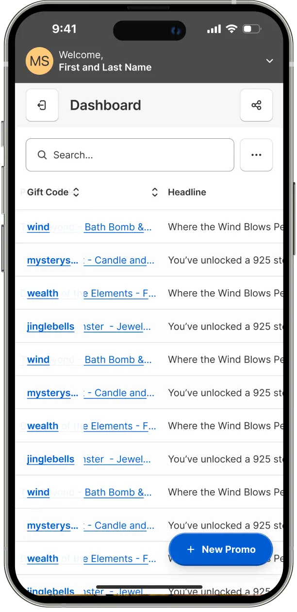 The dashboard interface was optimized for mobile, featuring a compact menu that consolidates multi-select controls, view customization options, and filter settings. This streamlined approach maintains desktop functionality while simplifying the mobile interface. A quick promo creation button was strategically placed in the bottom right corner, adhering to the Gutenberg Principle for optimal scanning and usability. All interactive elements were sized to ensure touch-friendly targets.